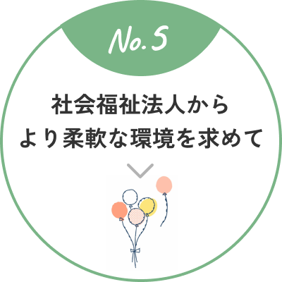 社会福祉法人で働いていましたが、もっと風通しが良く柔軟な環境を求めて転職しました。